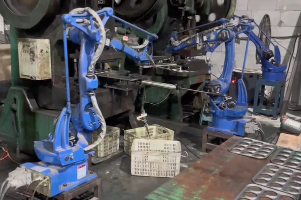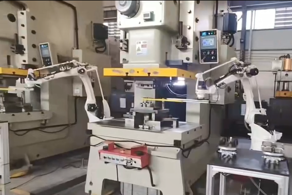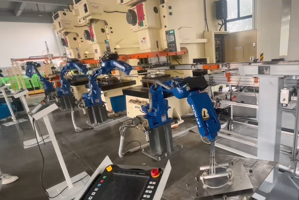 沖壓機(jī)器人是專門針對各種沖床與油壓機(jī)配置,高效替代人工沖壓作業(yè)并實(shí)現(xiàn)自動上下料的一種多用途工業(yè)機(jī)器人。沖壓機(jī)器人具有靈活垂直升降、水平旋轉(zhuǎn)、水平軸伸縮、工件旋轉(zhuǎn)、工件翻轉(zhuǎn)等多自由度動作,并可根據(jù)沖床高度、送料高度、下料高度自動適應(yīng),最大程度滿足各種沖壓產(chǎn)品工藝要求,從而實(shí)現(xiàn)無人化自動化智能工廠。沖壓機(jī)器人可以廣泛應(yīng)用于多種批量生產(chǎn)廠家,如金屬鈑金加工沖剪、成形、引伸。還有如交通車輛、鐘表、家電、文具、手工具、五金、電腦等產(chǎn)品沖壓加工,還可加裝自動送料機(jī),從事自動移送整條生產(chǎn)線加工。同時(shí)沖壓機(jī)器人可根椐企業(yè)自身實(shí)際需求選擇數(shù)控沖床、氣動型精密沖床、三圓導(dǎo)柱高速精密沖床或肘節(jié)式連桿式高精密高速沖床等配套,各系列沖床設(shè)備在五金自動化加工中應(yīng)用廣泛,已被眾多加工企業(yè)所認(rèn)可。