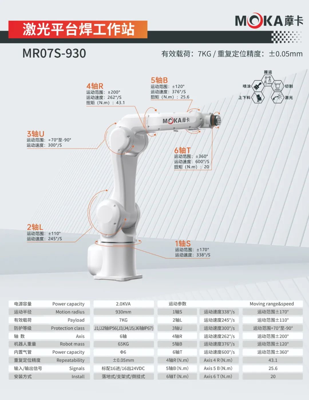 由MR07S-930為核心搭建的激光平臺(tái)焊工作站,主要針對精密零件、鈑金焊接等市場,能有效替代人工焊接或者專機(jī)焊接,減輕人工負(fù)擔(dān),為企業(yè)降低成本。