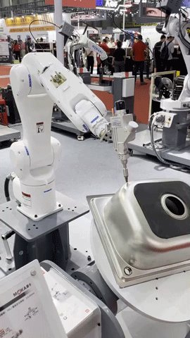 此焊接工作站搭載江龍智能的梟隆焊機(jī),雙電機(jī)同步驅(qū)動(dòng),具有推拉絲、送絲功能,適用于焊接碳鋼、不銹鋼、鋁合金、直流、單脈沖、雙脈沖。現(xiàn)場為用戶們展示焊接實(shí)操,吸引不少國內(nèi)外客戶駐足觀看。
